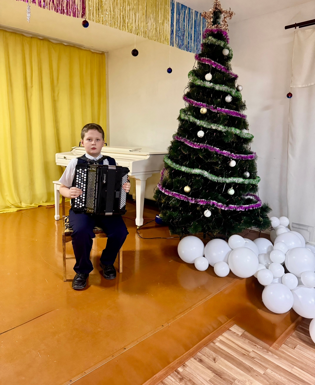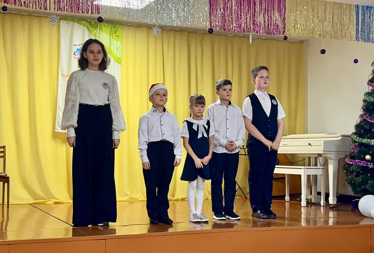 Новогоднее настроение создавали сегодня для своих близких юные музыканты. Праздничный концерт был открыт оркестром  народных инструментов.