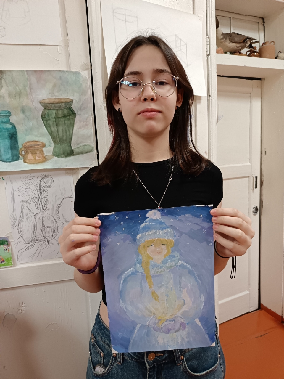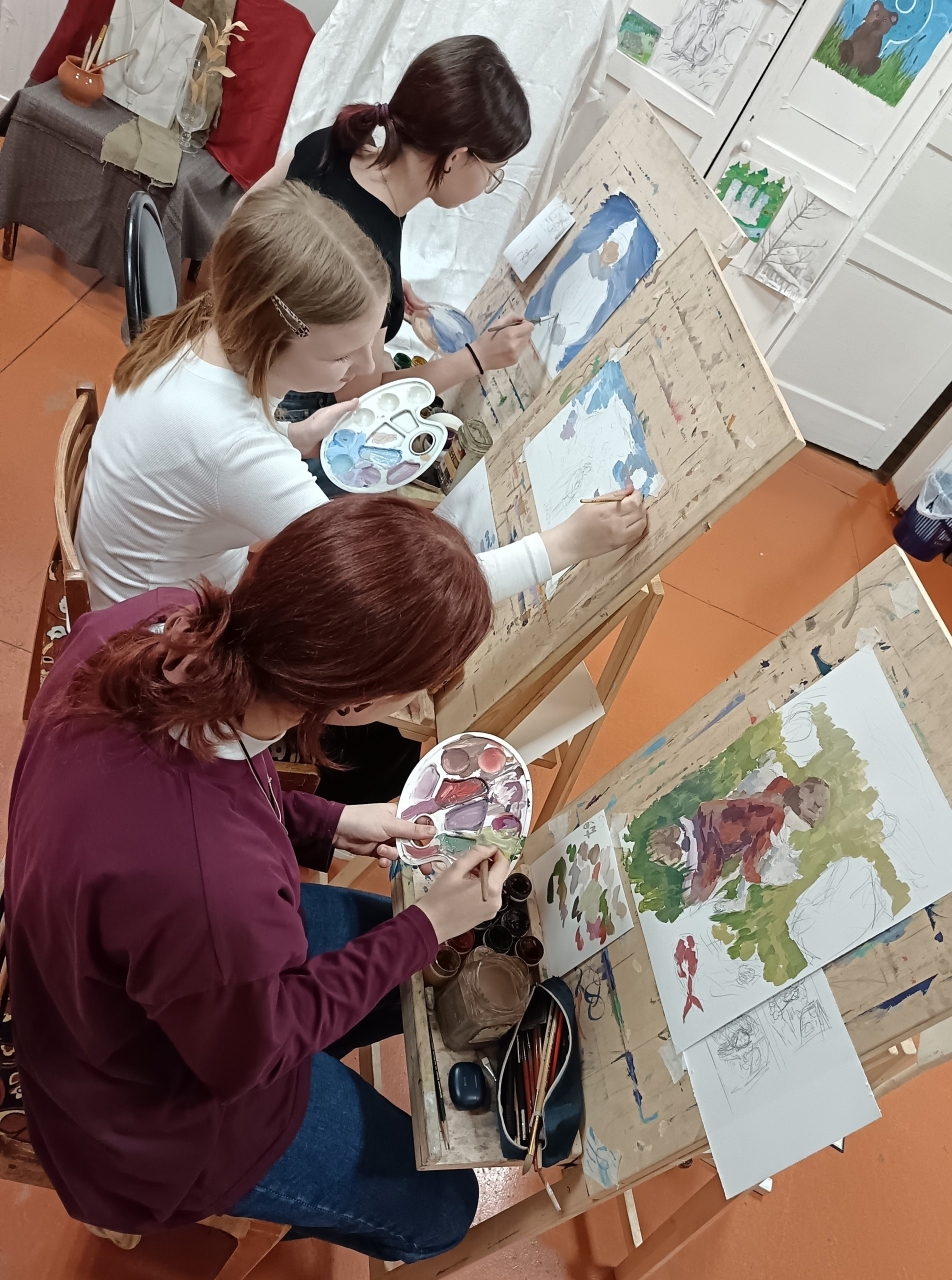 На выполнение работы даётся  три часа, за которые необходимо придумать композицию, продумать образ и довести рисунок до завершения.
